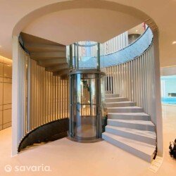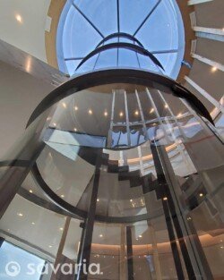 The Vuelift and the Vuelift mini are the only CSA B44-16 compliant panoramic glass elevators on the market. They are as practical as they are beautiful. The Vuelifts clear cab traveling up its self-supporting, integrated 360-degree clear hoist-way has to be seen to be believed. Don’t let the beauty of the Vuelift fool you however, Vuelifts are rated from 500lb for the Mini up to 950lbs for a glass panel, round or octagonal unit. Their unique shape takes up 7 to 10 square feet less than a conventional elevator and requires as little as a 50” circular footprint.